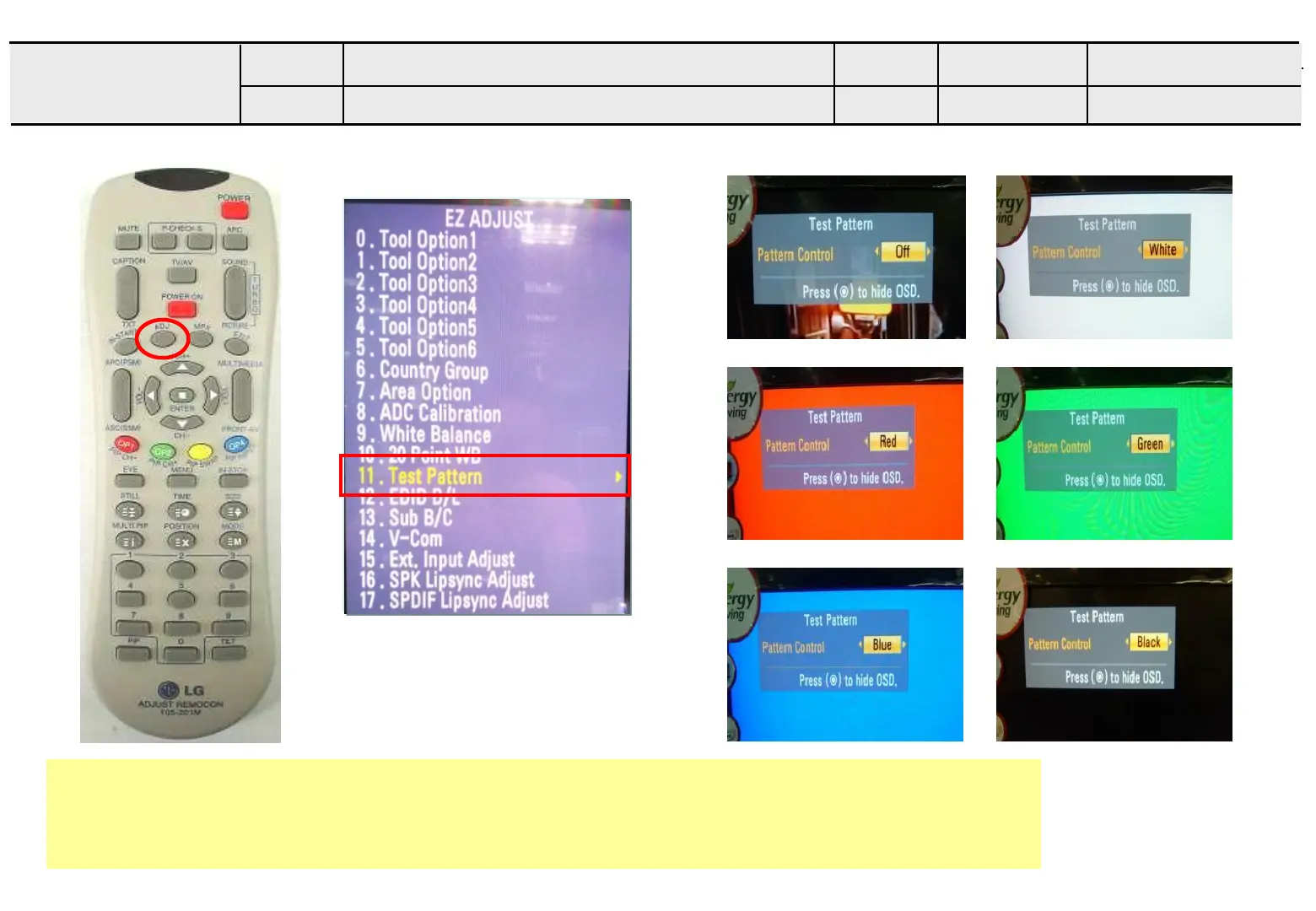 Adjustment Test pattern - ADJ Key