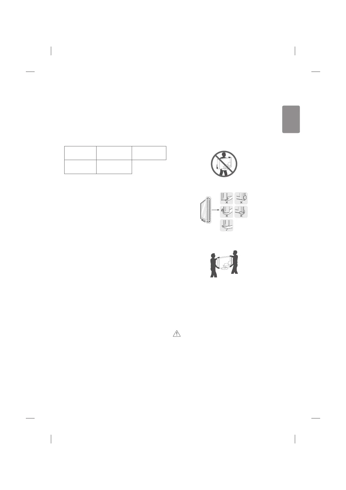 tHold the top and bottom of the TV frame rmly. Make sure not to