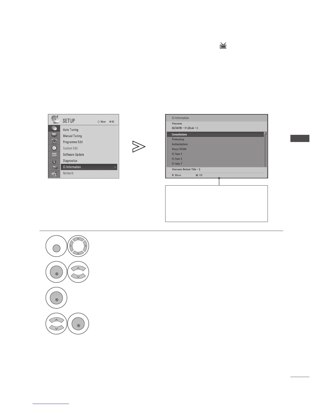 This function enables you to watch some encrypted digital terrestrial services (pay services). If you remove the CI