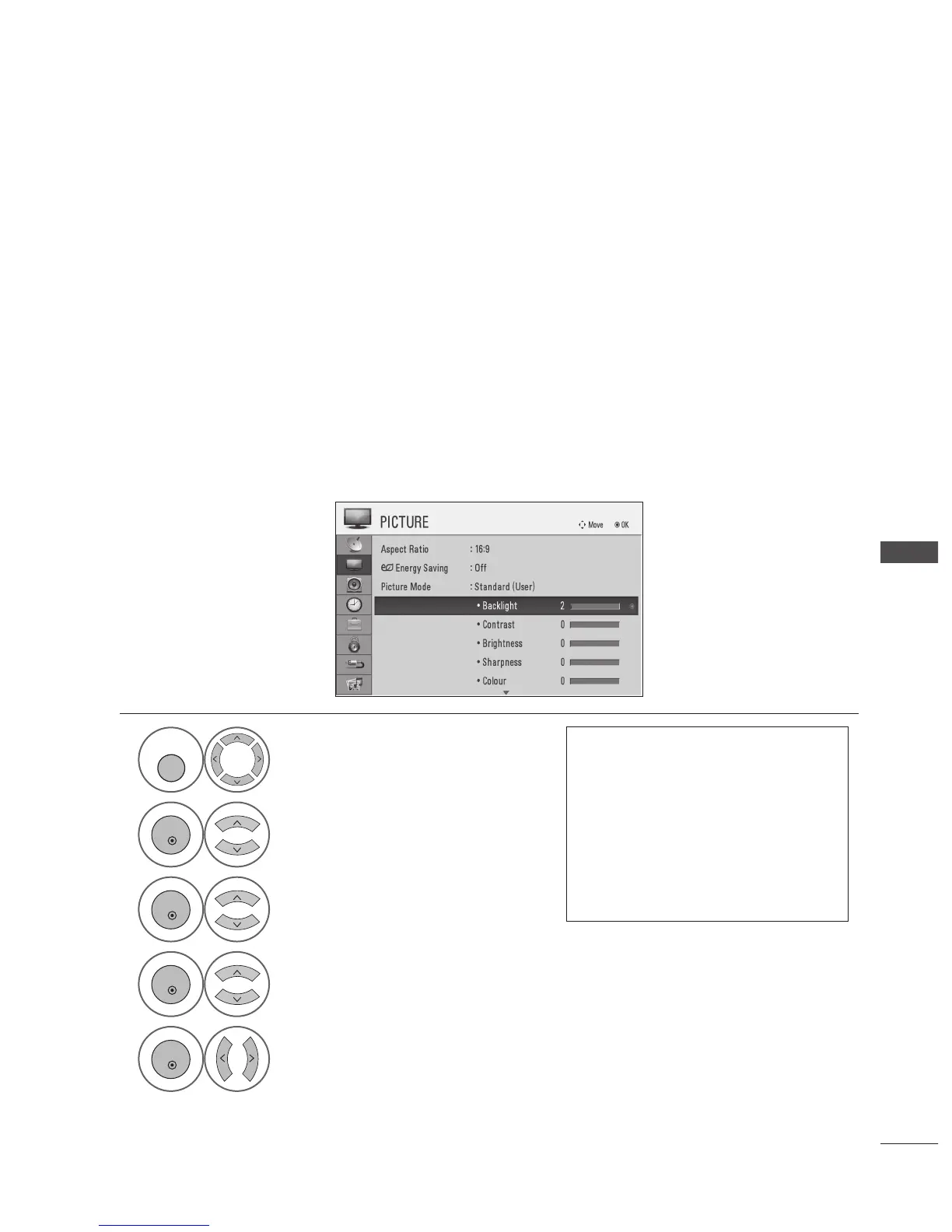 Adjusting the backlight when setting the brightness of the set is recommended.