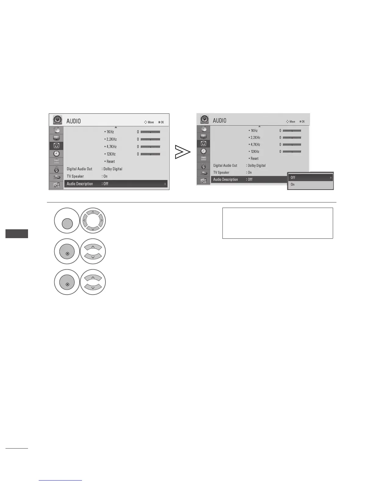 When Audio Description On is selected, basic audio and Audio Description are provided only for those programmes that