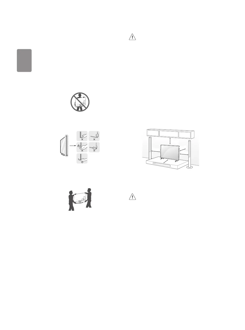 • Hold the top and bottom of the TV frame firmly. Make sure not to