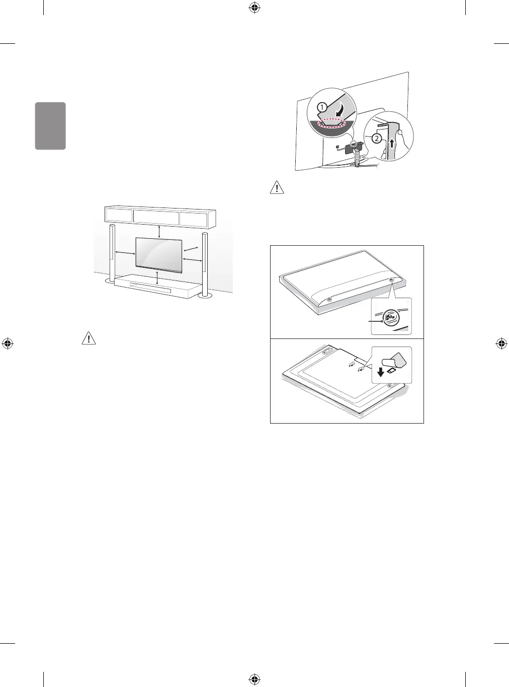 • When mounting a TV on the wall, make sure not to install