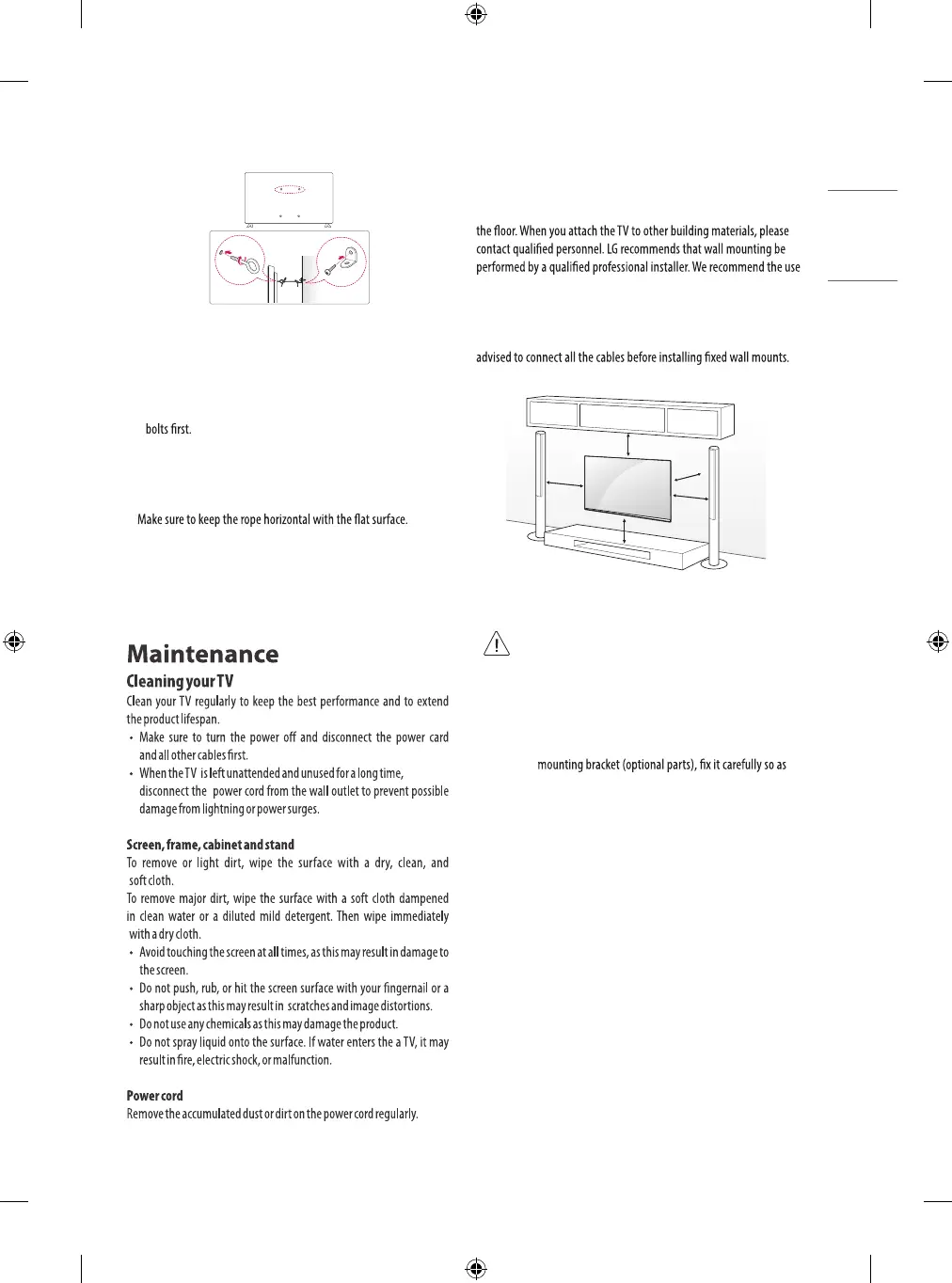• When mounting a TV on the wall, make sure not to install