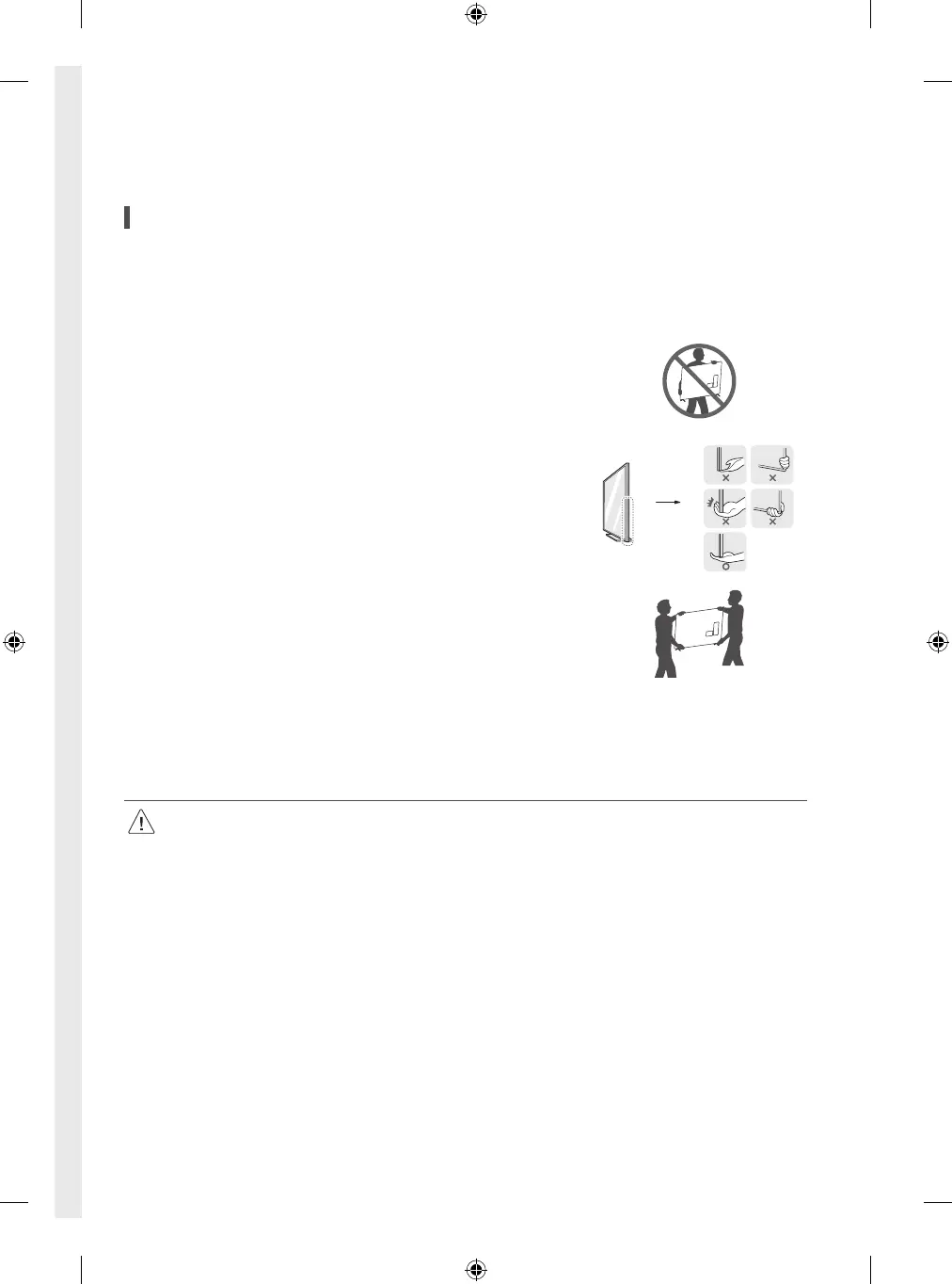 • Al transportar el televisor con las manos, sosténgalo como se indica en esta ilustración.