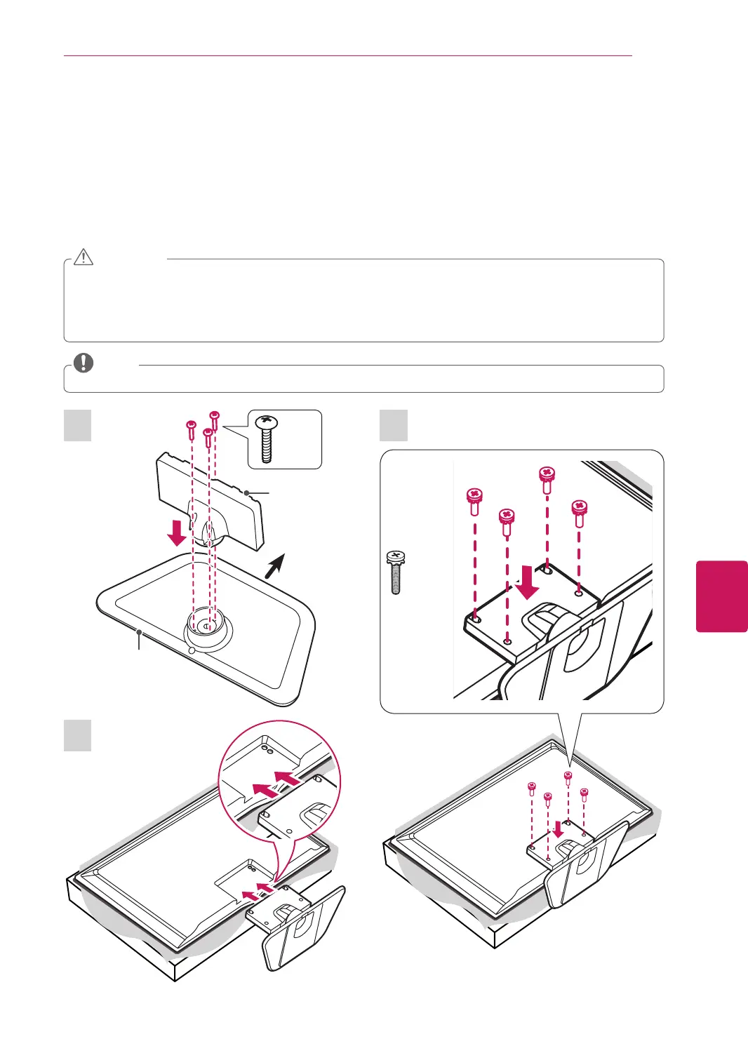 Make sure that the screws are fastened tightly. (If they are not fastened securely enough, the TV may tilt forward