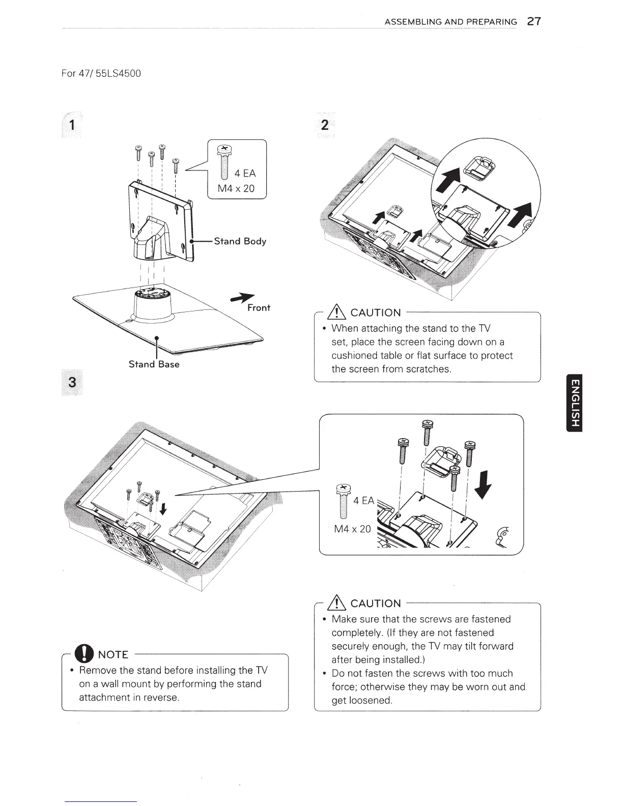 • When attaching the stand to the