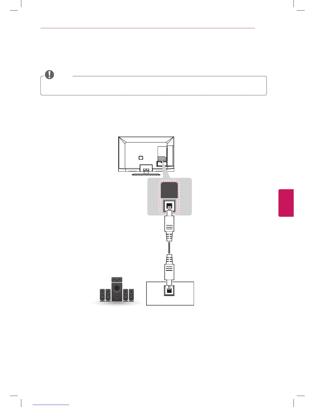 Transmits a digital audio signal from the TV to an external device. Connect the external device and the TV