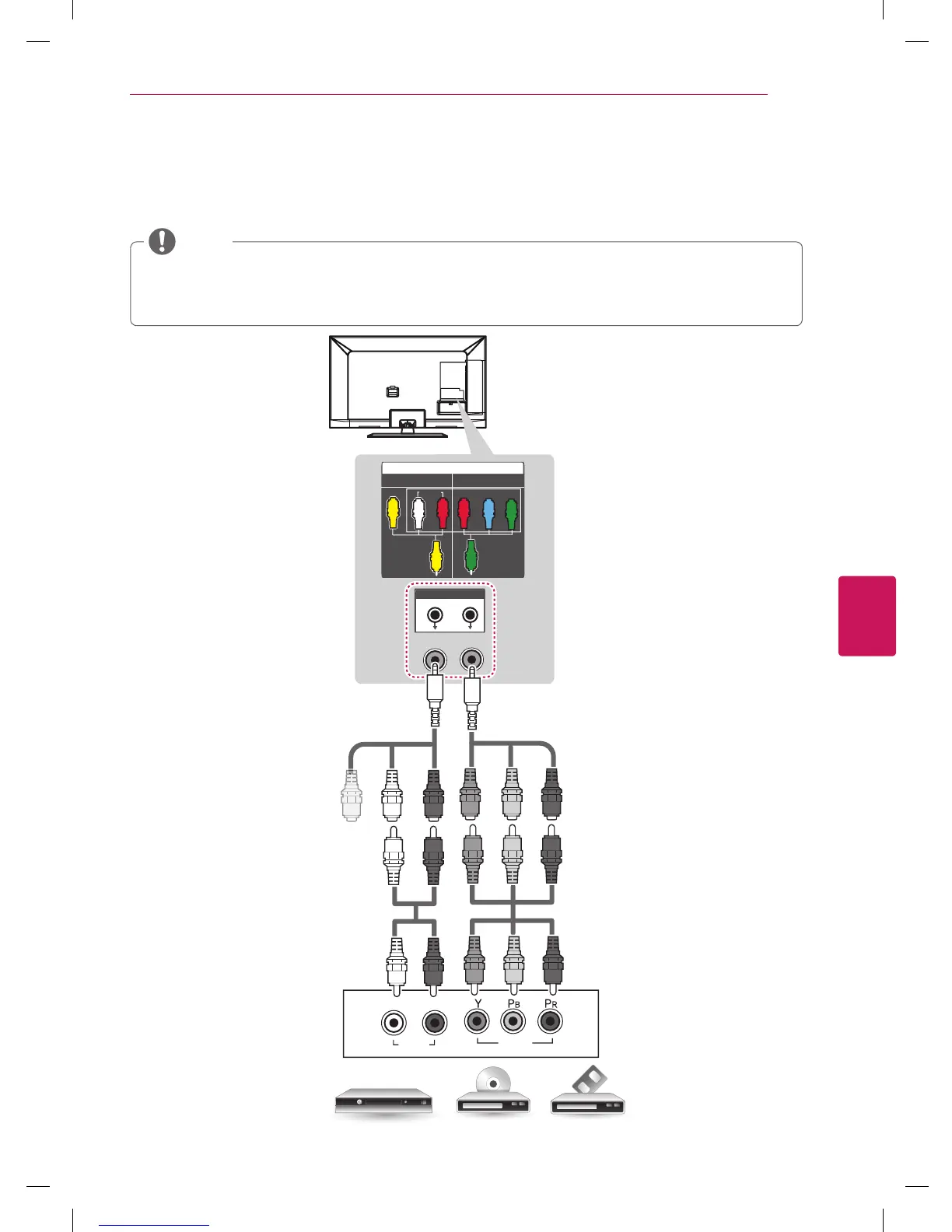 Transmits analog video and audio signals from an external device to the TV. Connect the external device