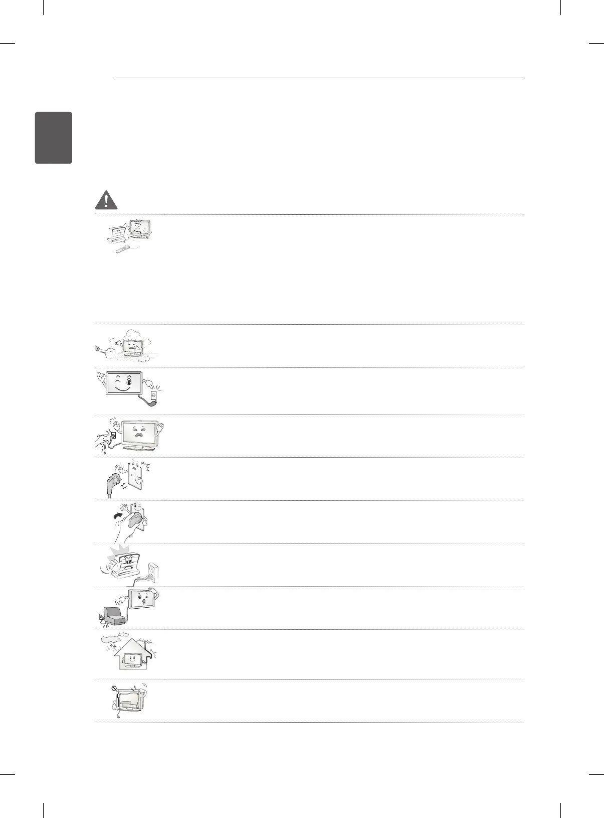Otherwise, this may result in fire, electric shock, malfunction or product deformation.