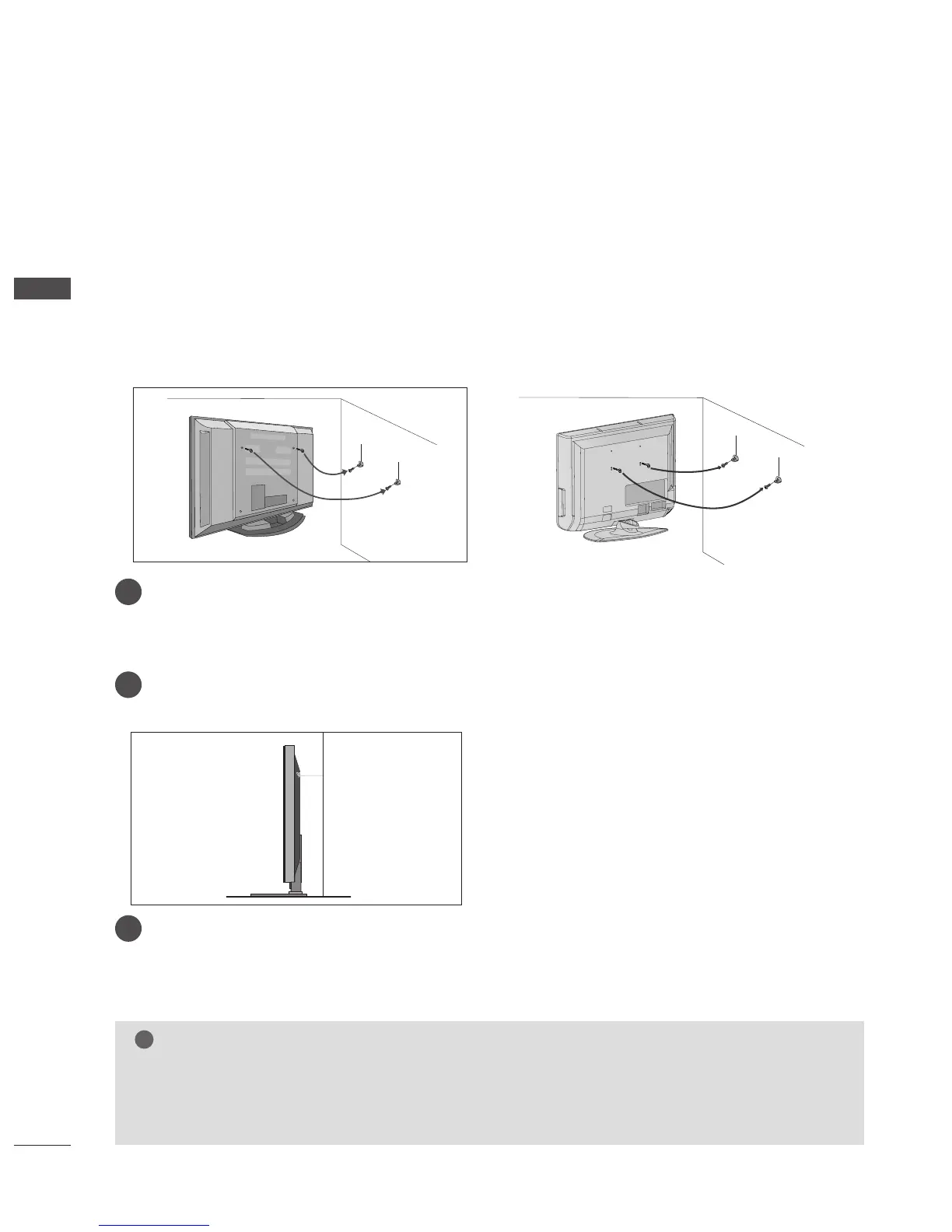Secure the cord in such a way that it becomes taught when the TV is in position.