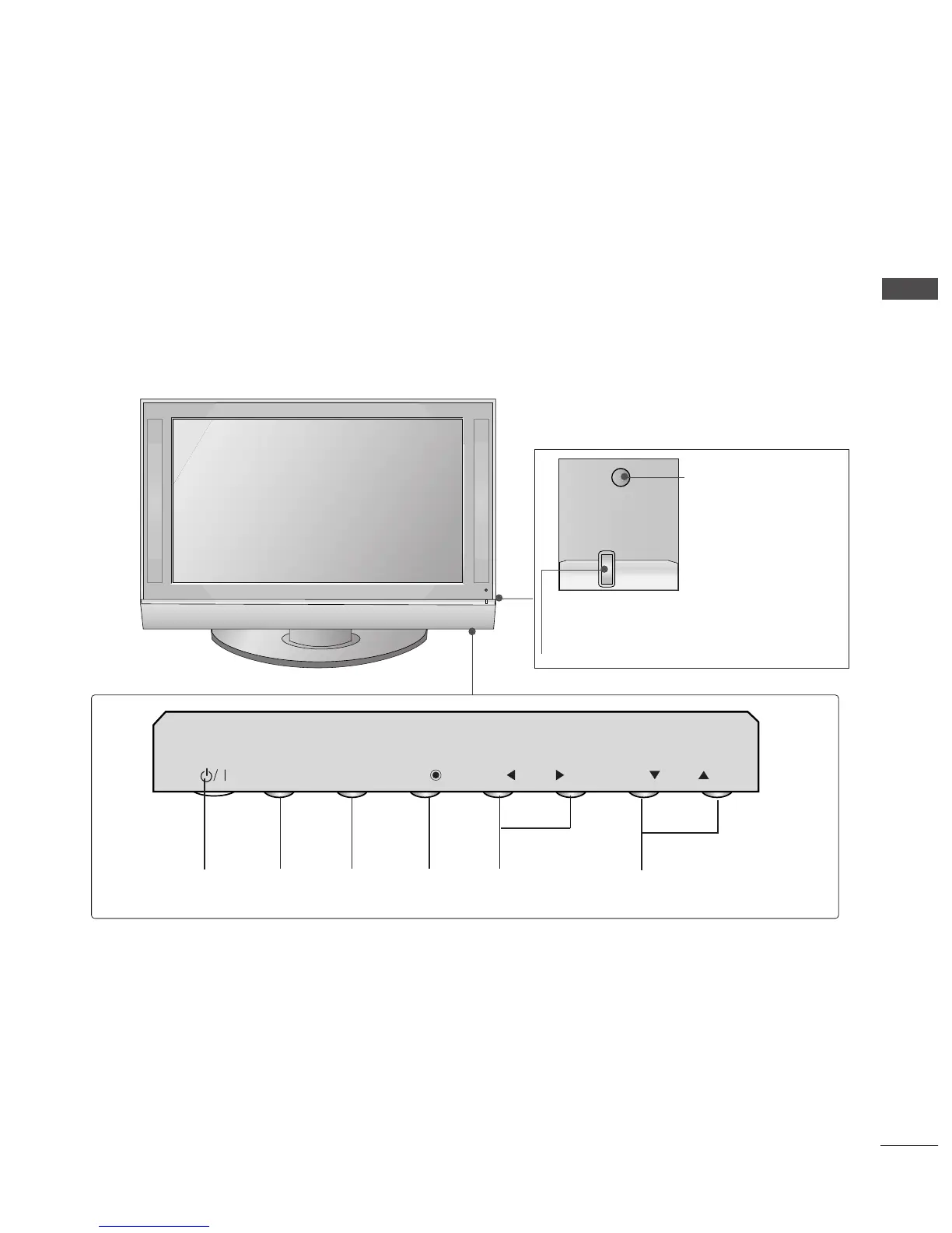 This is a simplified representation of the front panel. Image shown may differ from your TV.