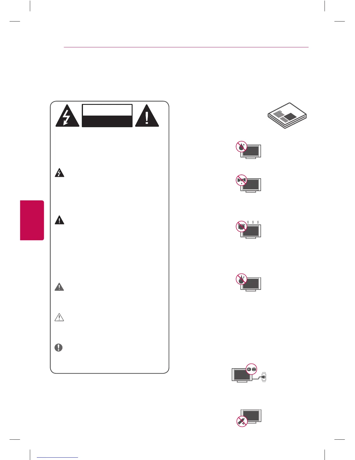 • Do not allow the television to become wet.