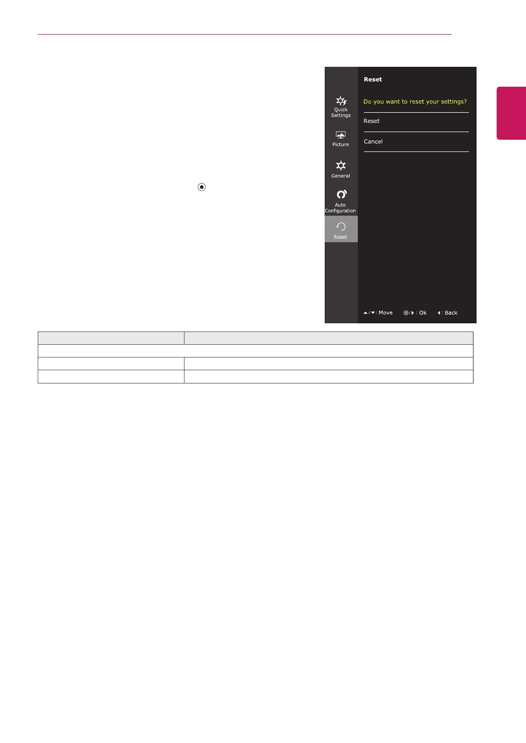 Reset Returns to the default settings.