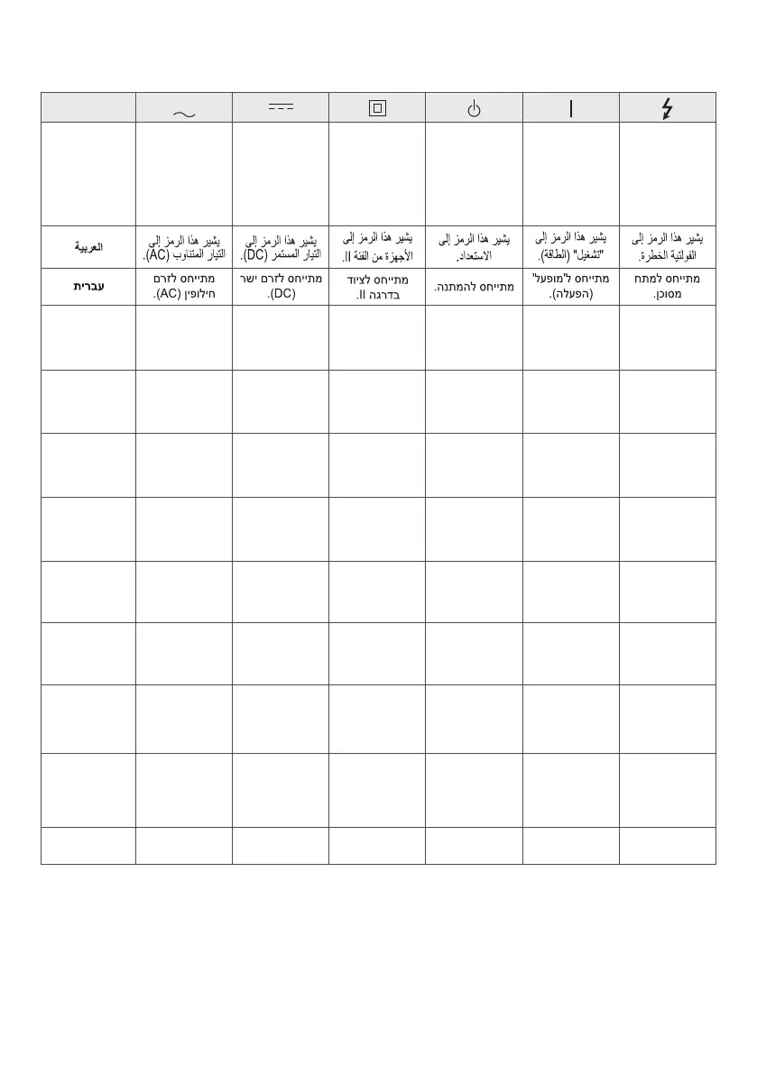 교류 (AC)를 의미 직류 (DC)를 의미 II급 기기를 의미 대기 상태를 의미