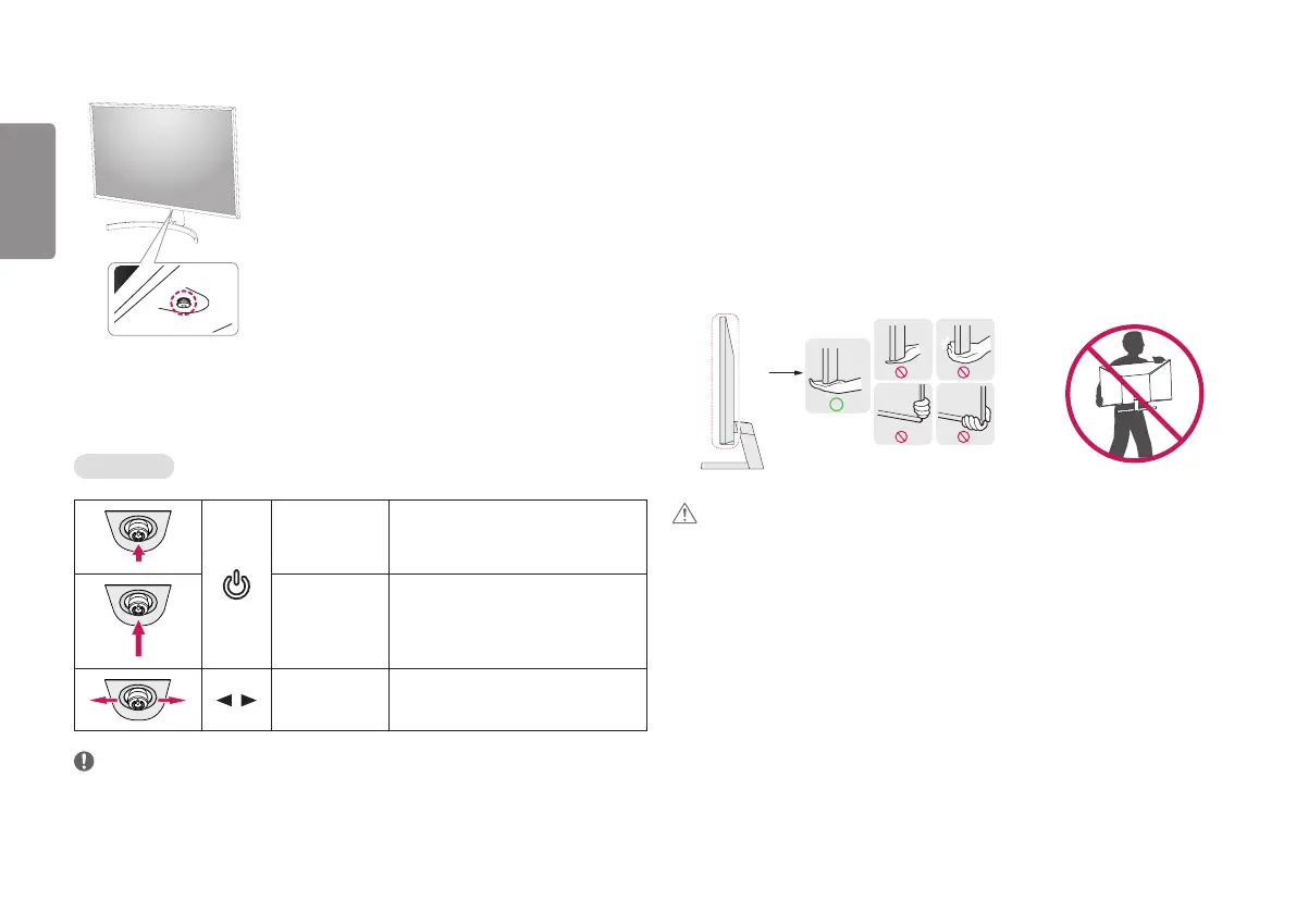 • If you use the monitor panel without the stand base, its joystick button may cause the monitor to become