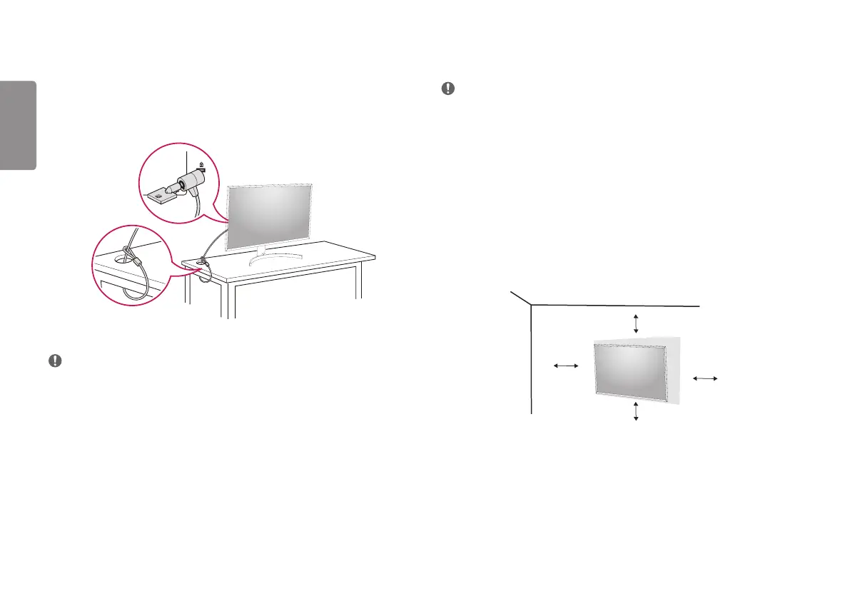 Install the monitor at least 100mm (3.94 inches) away from the wall and leave about 100mm (3.94 inches)