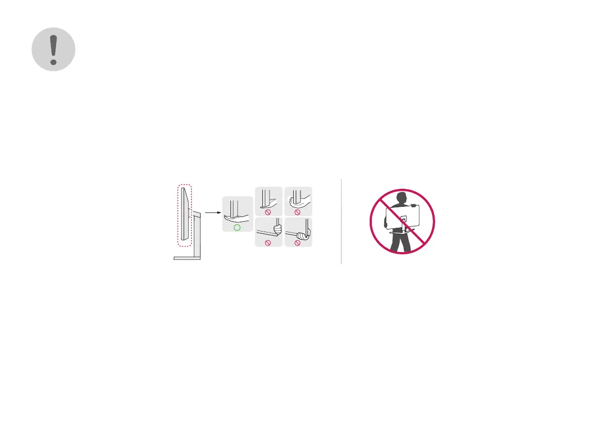 • Hold the bottom and side of the monitor frame rmly. Do not hold the panel itself.