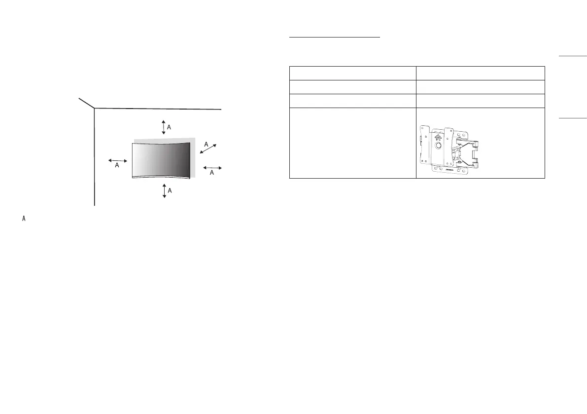 Install the monitor at least 100mm (3.9inches) away from the wall and leave about 100mm (3.9inches)