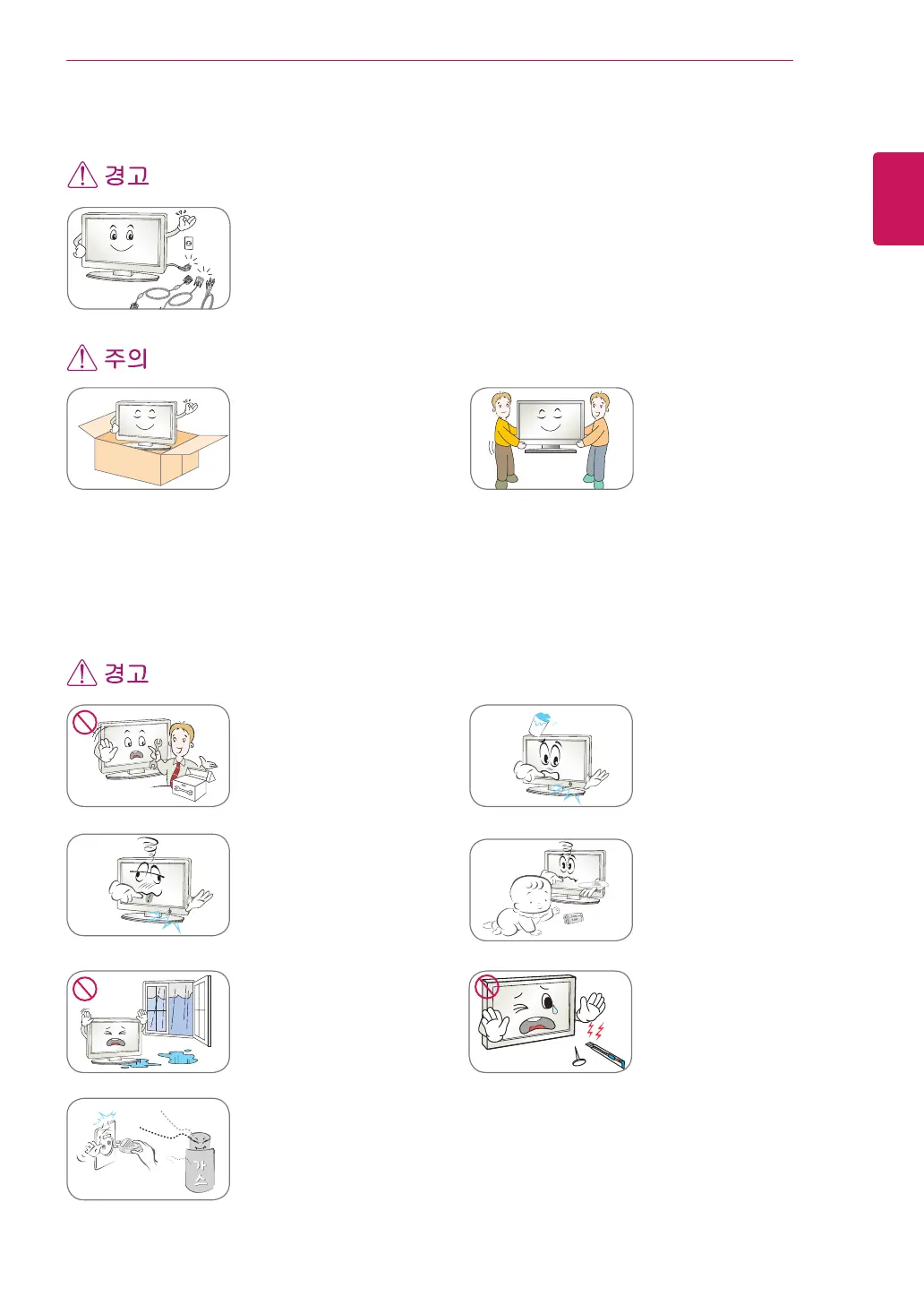 - 고압의 전기를 사용하는 제품을 모니터 주변에서 사용하지