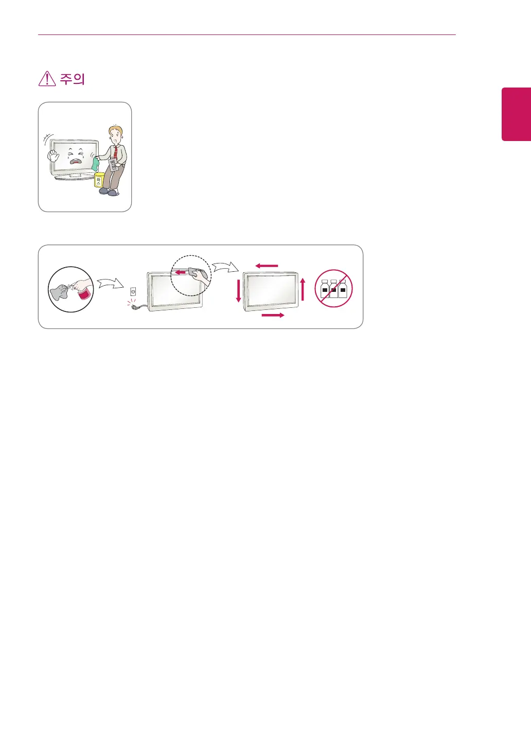 거나 물걸레로 닦지 마세요.