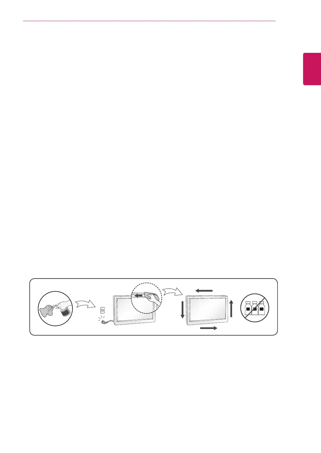 Ziehen Sie den Netzstecker des Displays aus der Steckdose, bevor Sie die Bildschirmoberfläche