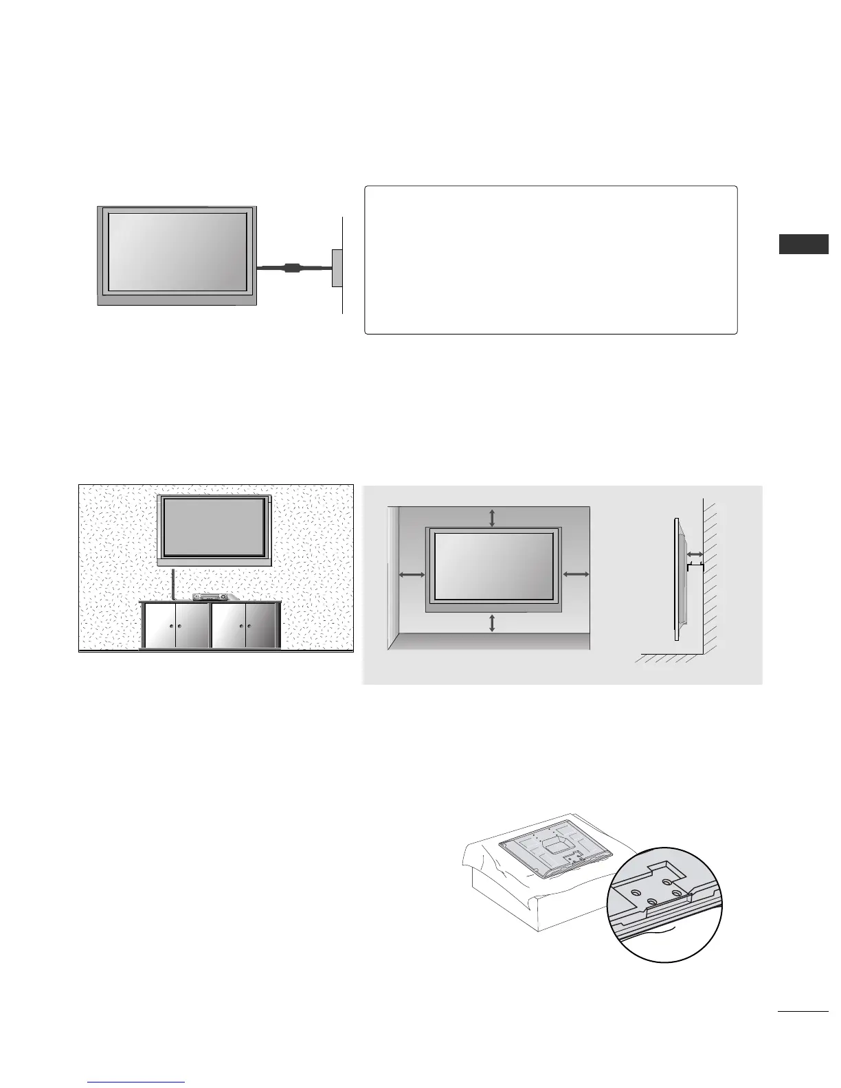 For adequate ventilation allow a clearance of 4” (10cm) all around the TV. We recommend that you use a wall