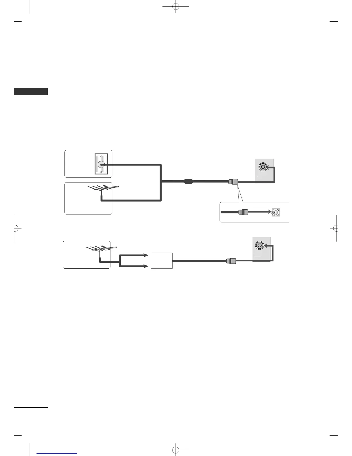 If signal needs to be split for two TVs, use an antenna signal splitter for connection.