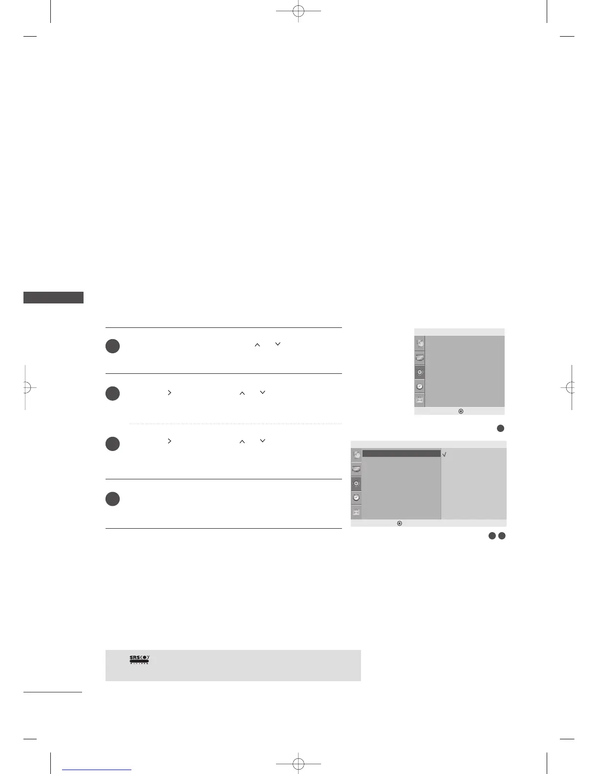 You can select your preferred sound setting; SRS TSXT, Clear Voice, Standard, Music,