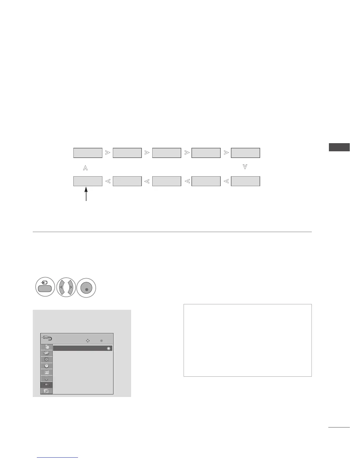 button, you can move from External Input to RF Input and to the last watched programme in DTV/RADIO/TV