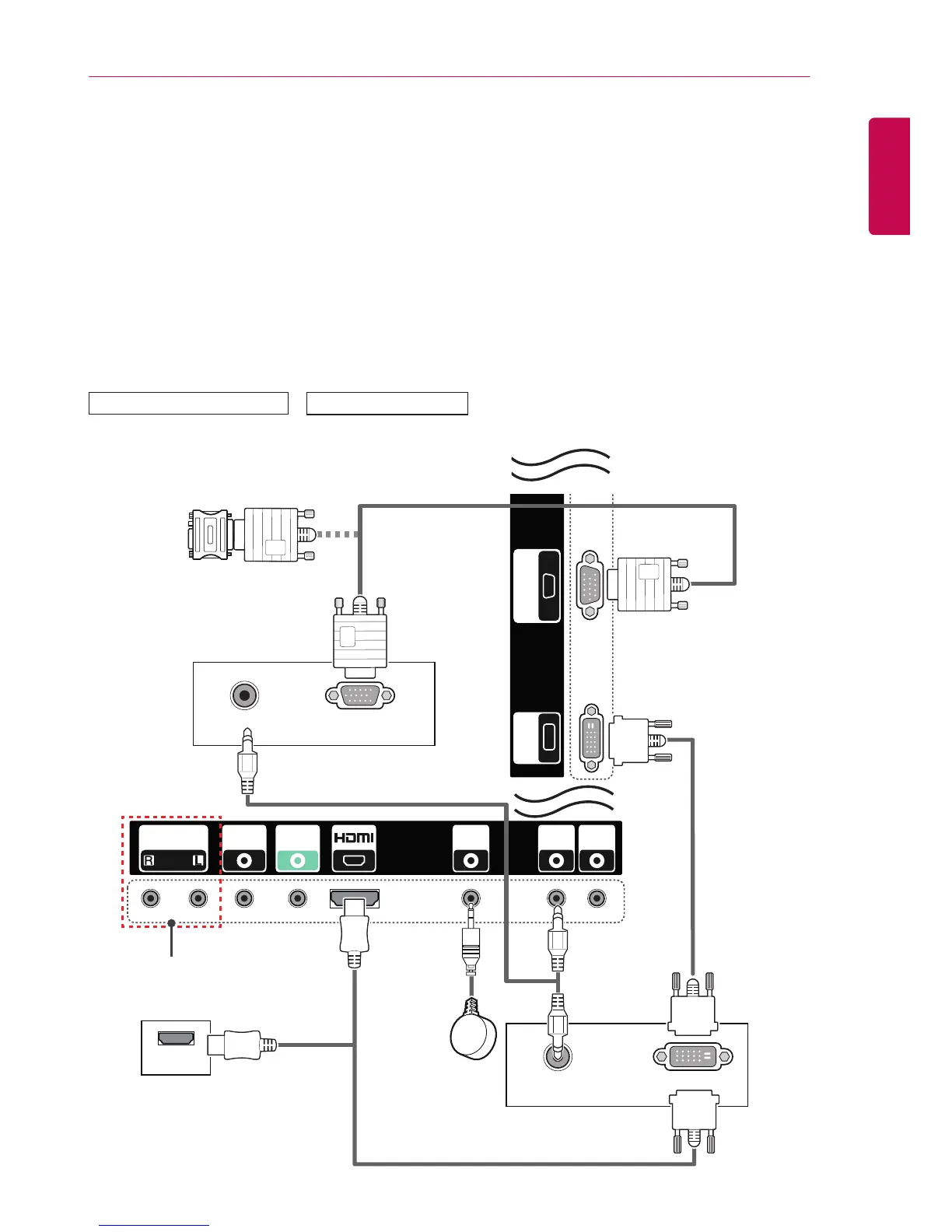 For more information about external device connections, see the user manual provided with each device.