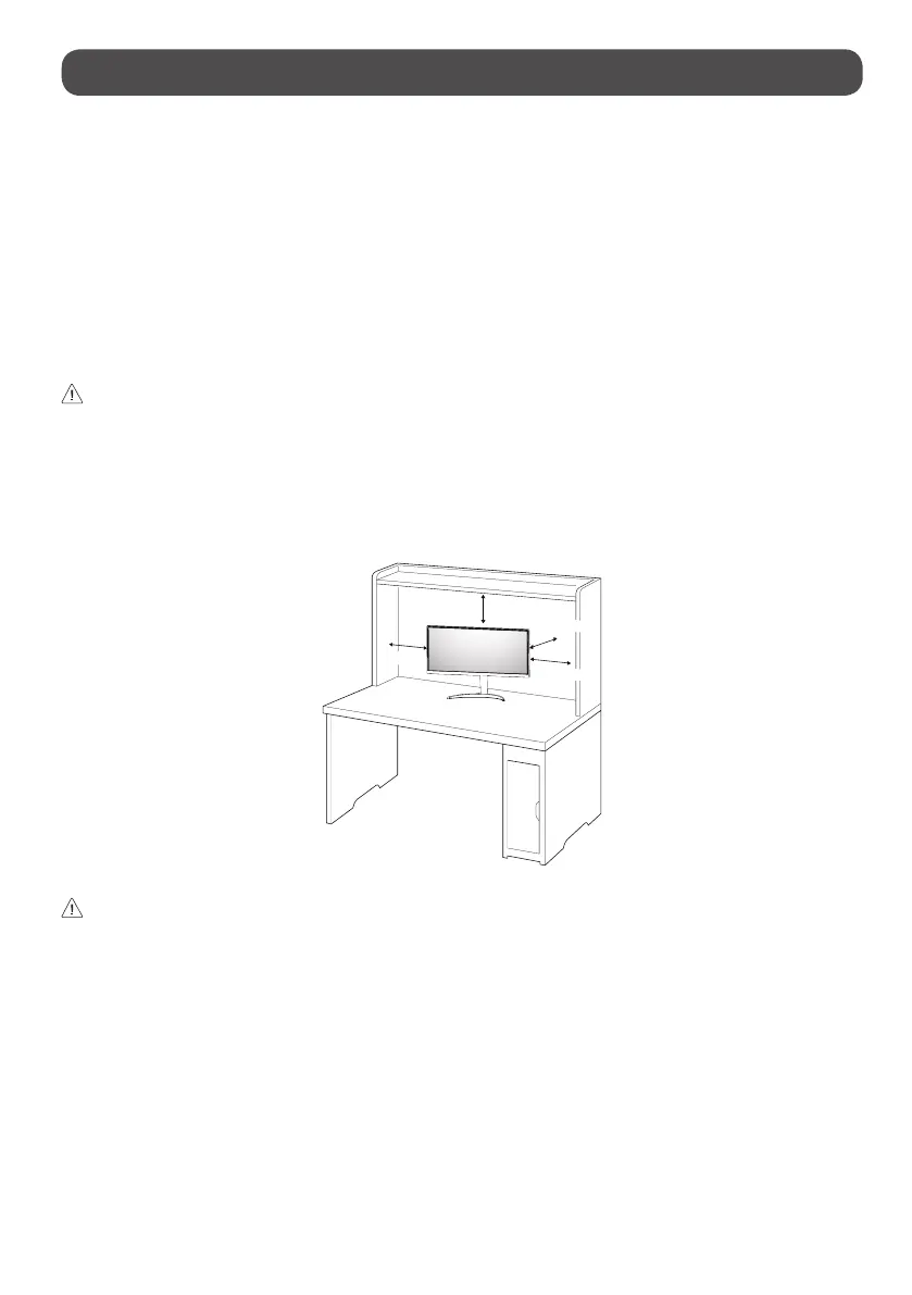 • Lift the monitor and place it on the table in an upright position. Place the monitor at least 100mm away from the wall to ensure sufficient ventilation.