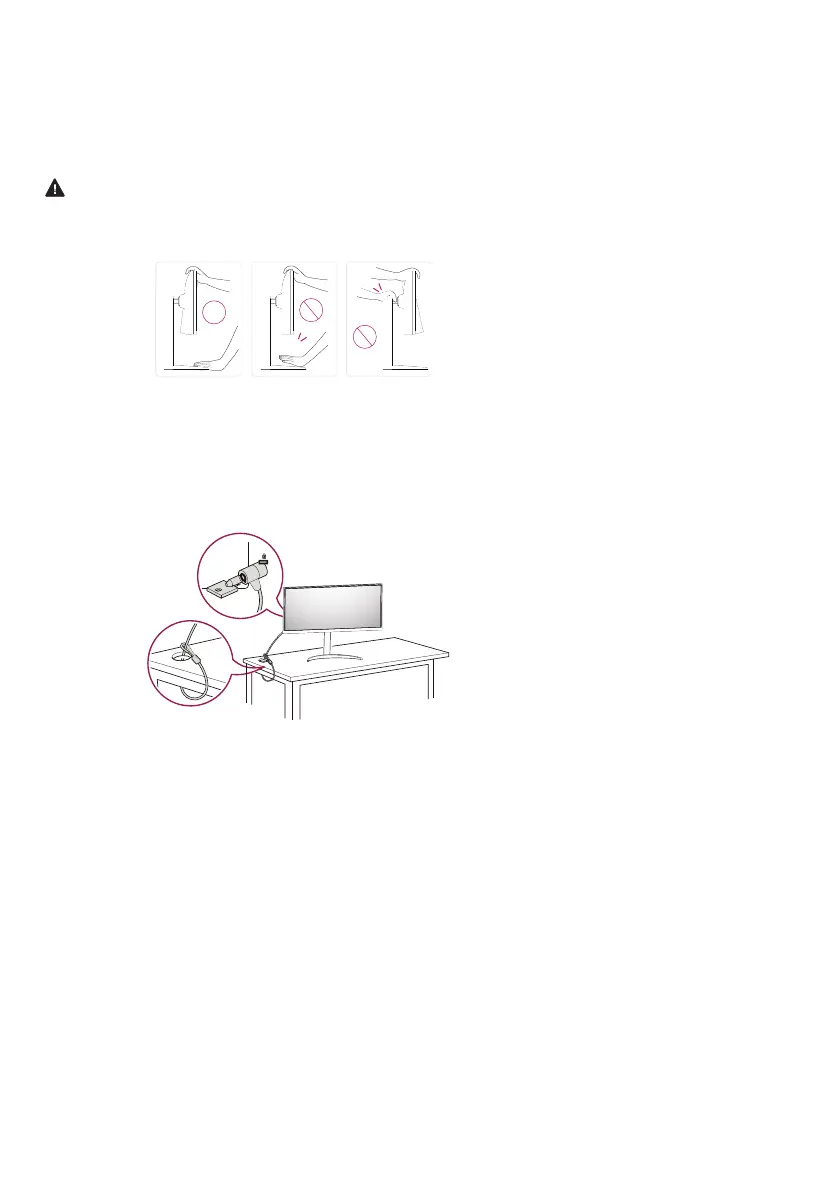 • To avoid injury to the fingers when adjusting the screen, do not hold the lower part of the monitor’s frame as illustrated below.