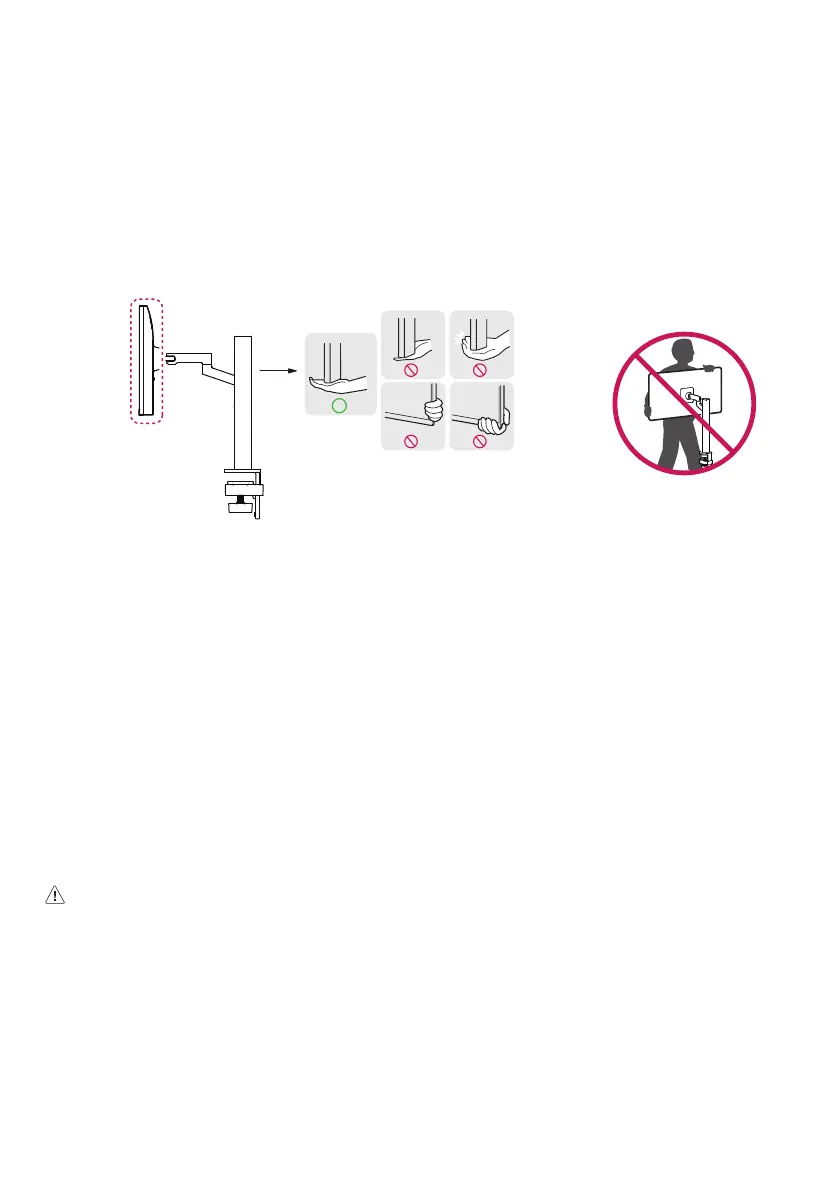 • When holding the monitor, the screen should face away from you to prevent it from being scratched.
