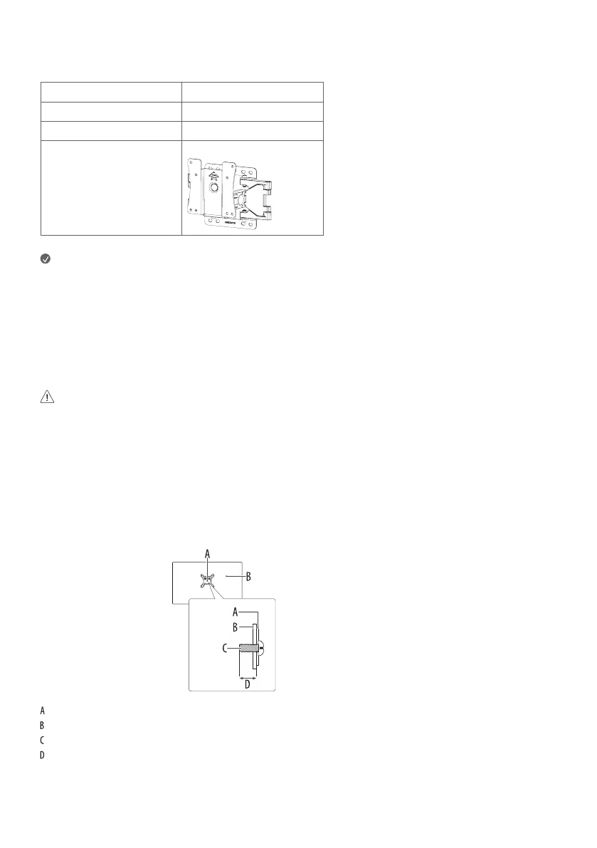 • Be careful not to apply too much force while mounting the wall mount plate as it may cause damage to the screen.