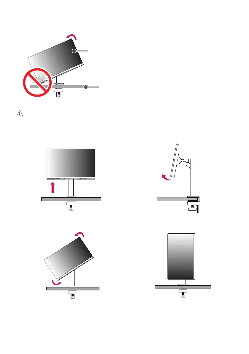 When using the Pivot function, do not rotate the monitor too fast or with excessive force. The table may be scratched by contact with the monitor’s head.