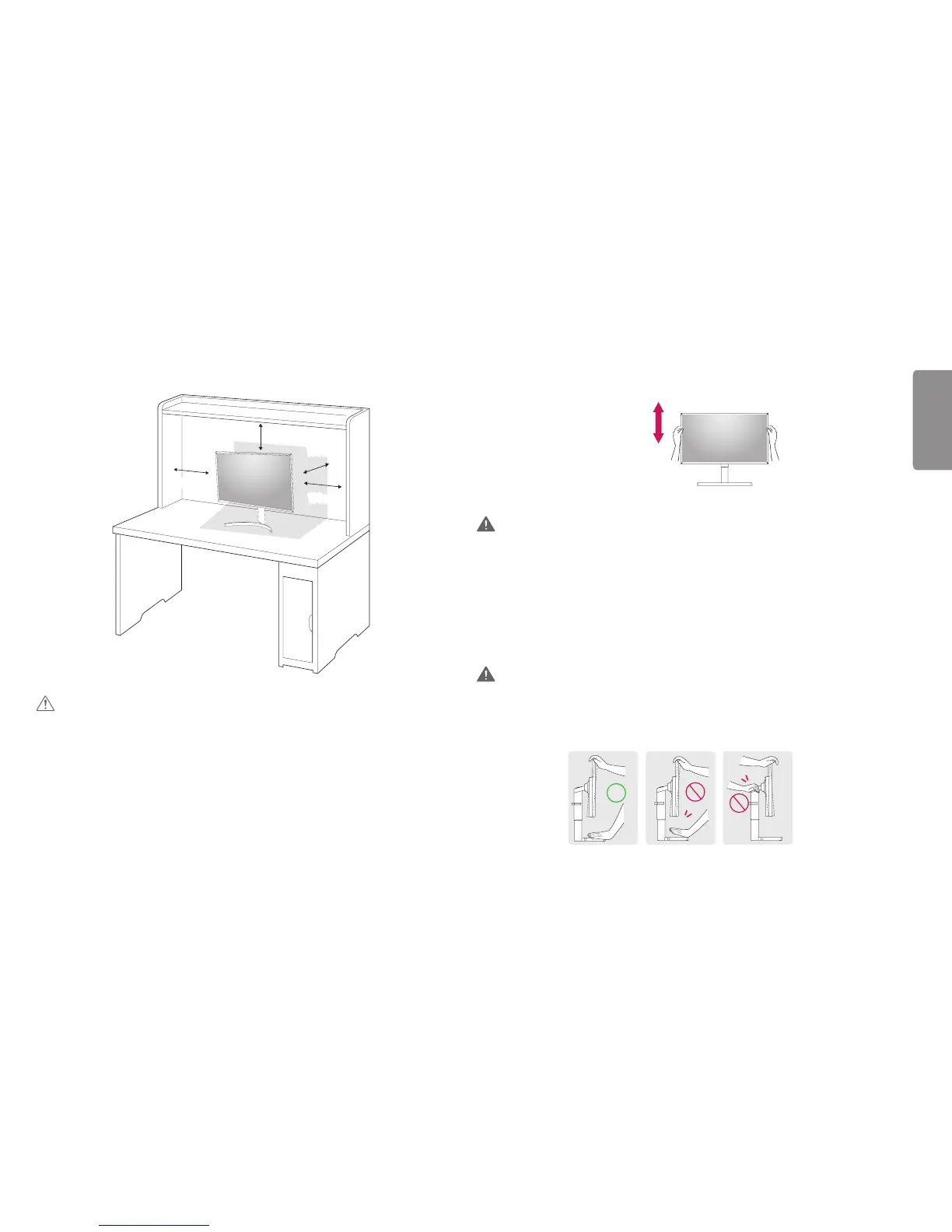 • To avoid injury to the fingers when adjusting the screen, do not hold the lower part of the monitor’s frame as