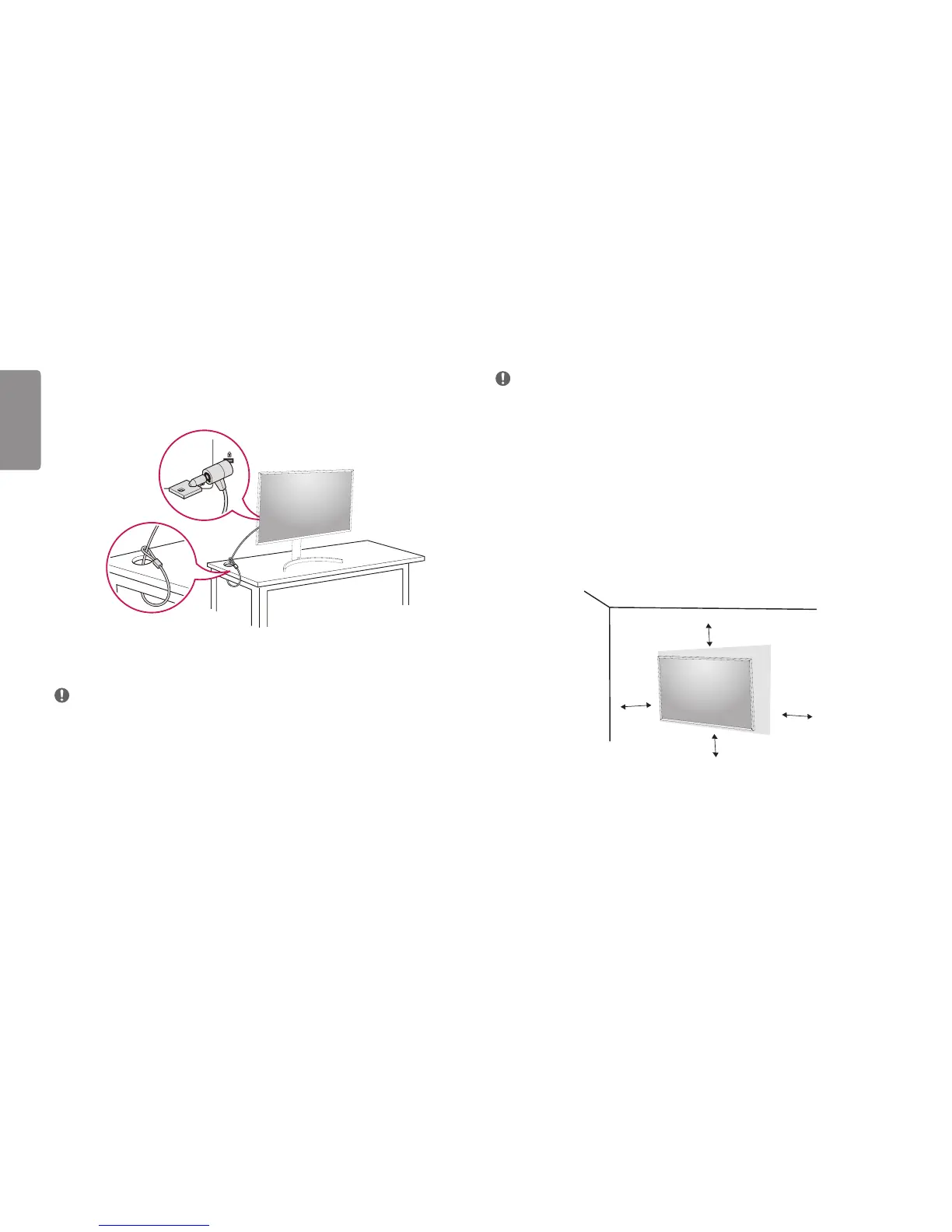 Install the monitor at least 100mm away from the wall and leave about 100mm of space at each side of the