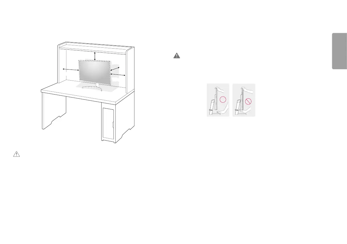 • Lift the monitor and place it on the table in an upright position. Place the monitor at least 100mm away from