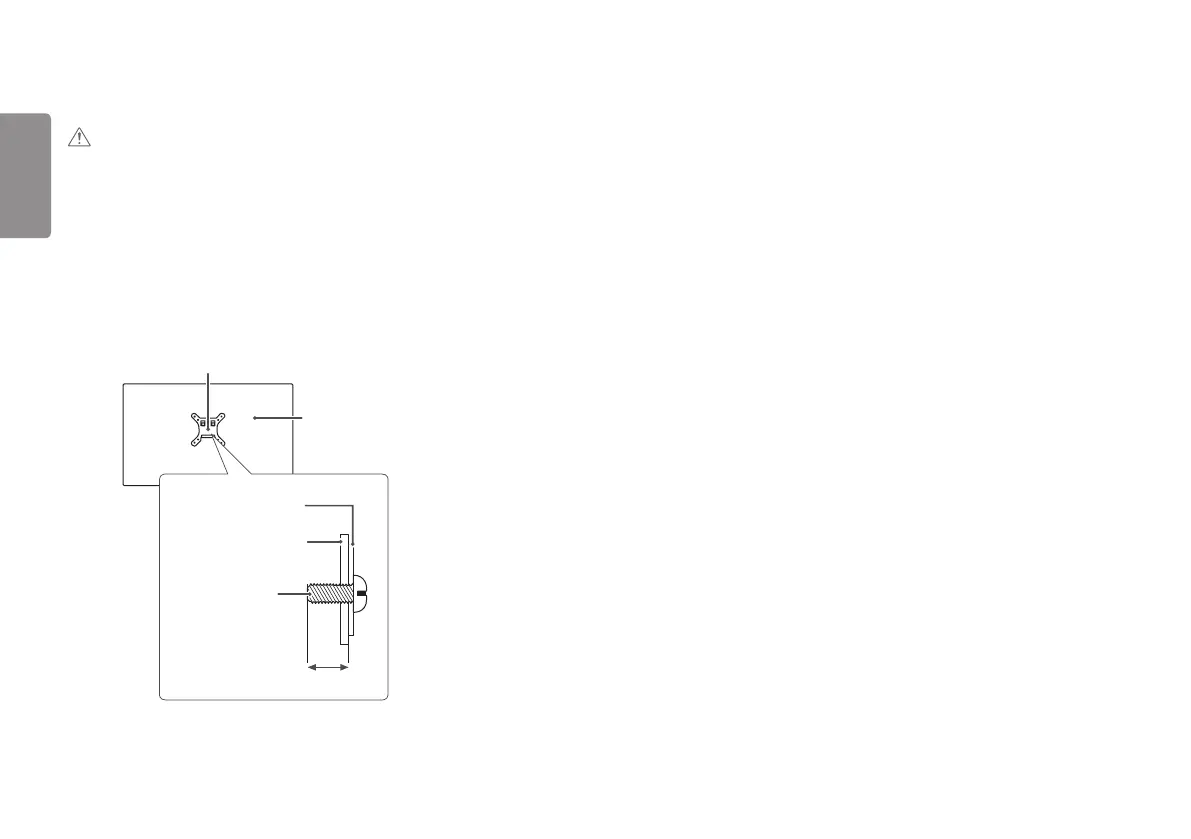 • When measured from the back of the monitor, the length of each installed screw must be 8 mm (0.3 inches)