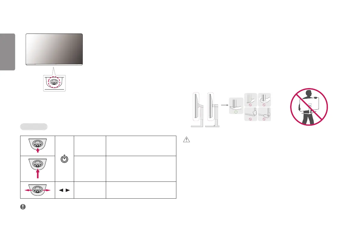 • If you use the monitor panel without the stand base, its joystick button may cause the monitor to become