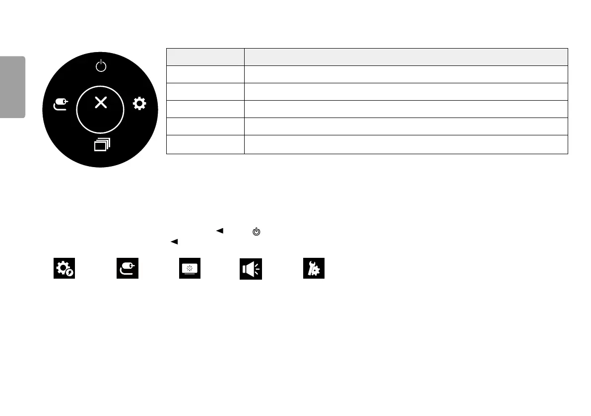 1 To view the OSD menu, press the joystick button at the bottom of the monitor and then enter the Settings.