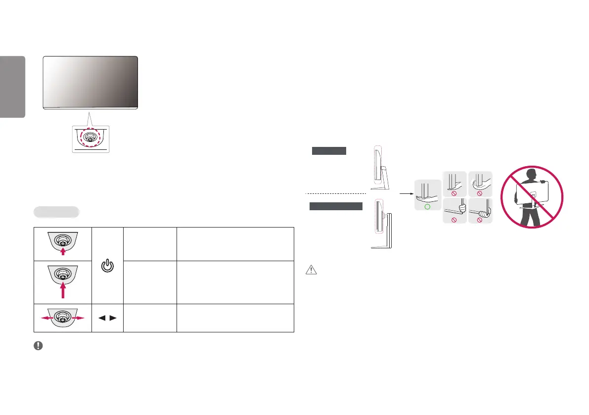 • If you use the monitor panel without the stand base, its joystick button may cause the monitor to become