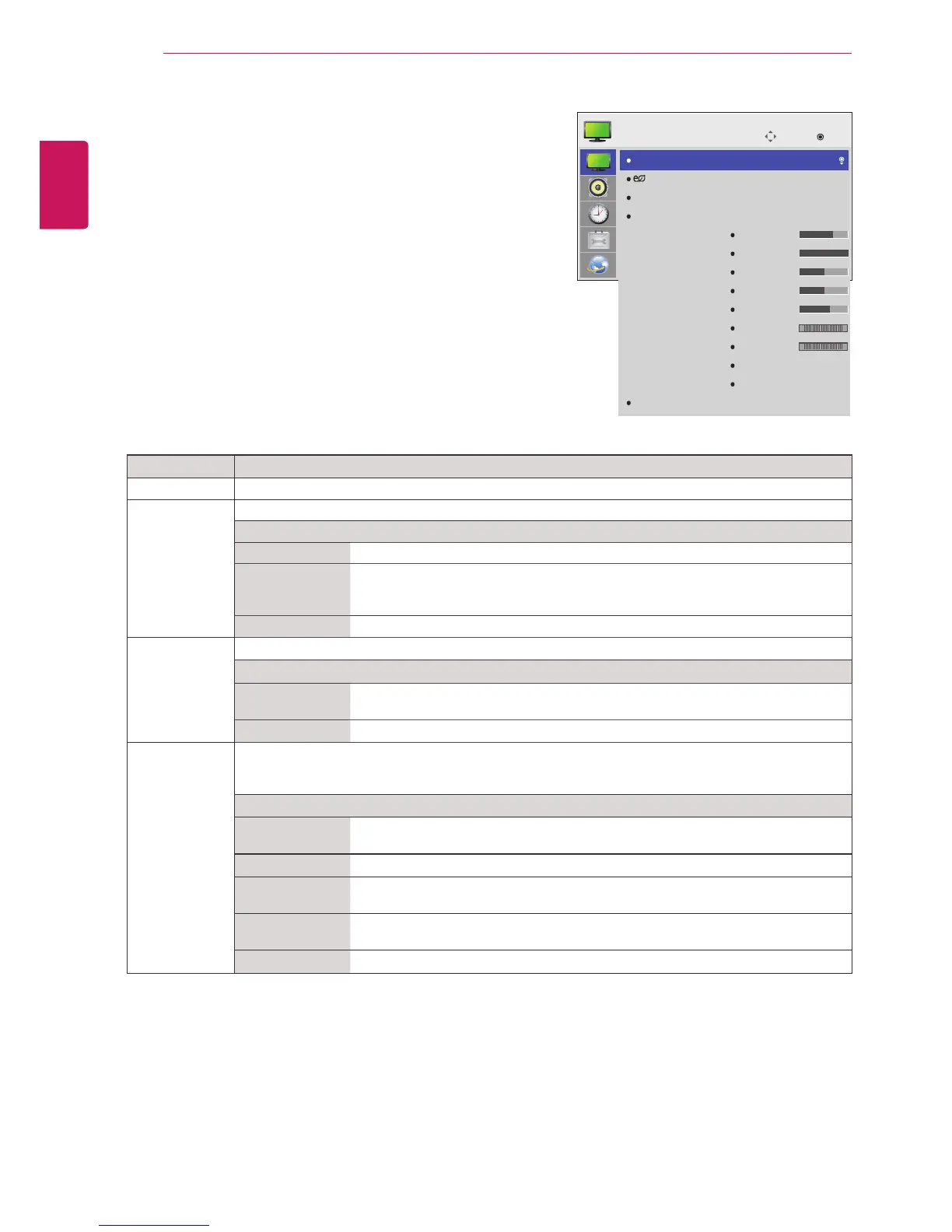 Theavailablepicturesettingsaredescribedinthefollowing: