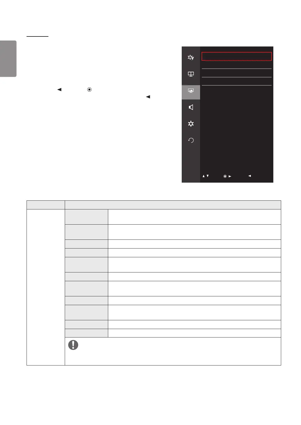 Picture Mode Custom Allows the user to adjust each element. The color mode of the main menu can be