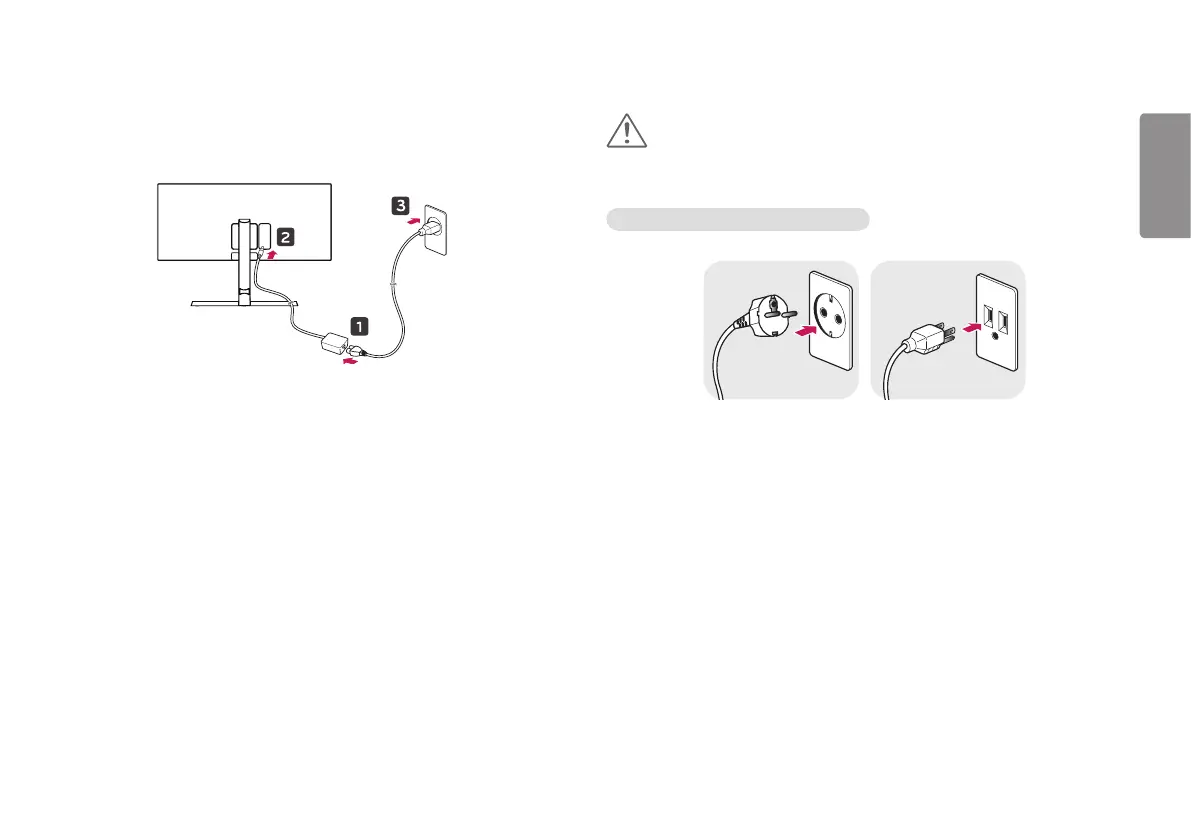 2 Connect the power adapter to the monitor and then plug the power cord into