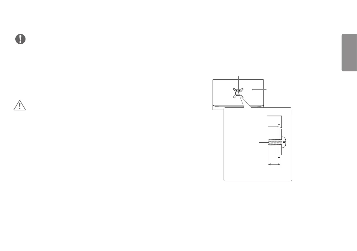 falling off, which could lead to injury. Use an authorized LG wall mount and contact