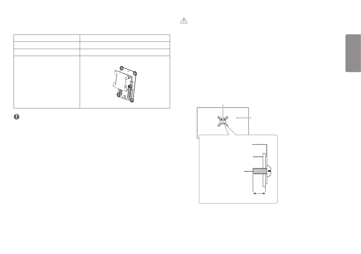• The length of the screw may differ for each wall mounting bracket. If you use screws longer than the standard