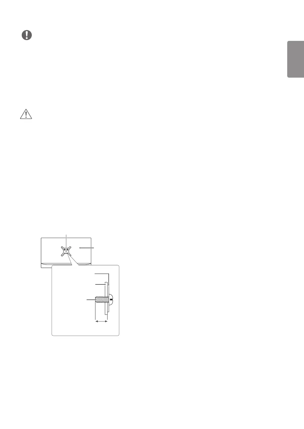 of each installed screw must be 8 mm (0.3 inches) or less.