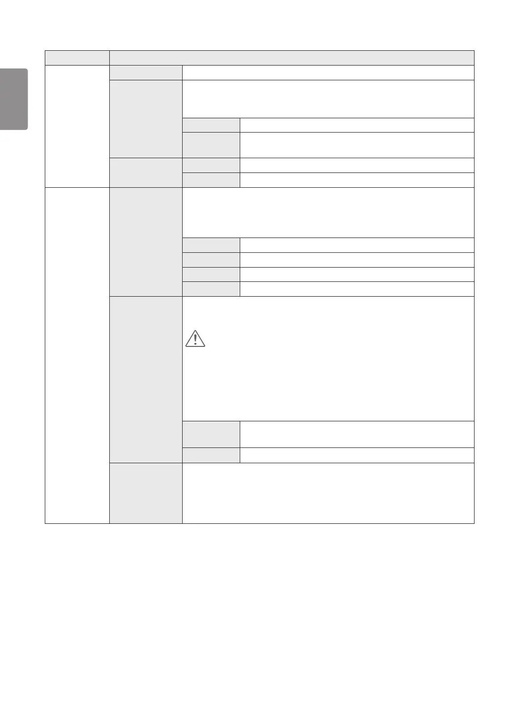 Game Adjust Response Time Sets a response time for displayed pictures based on the speed of the screen.